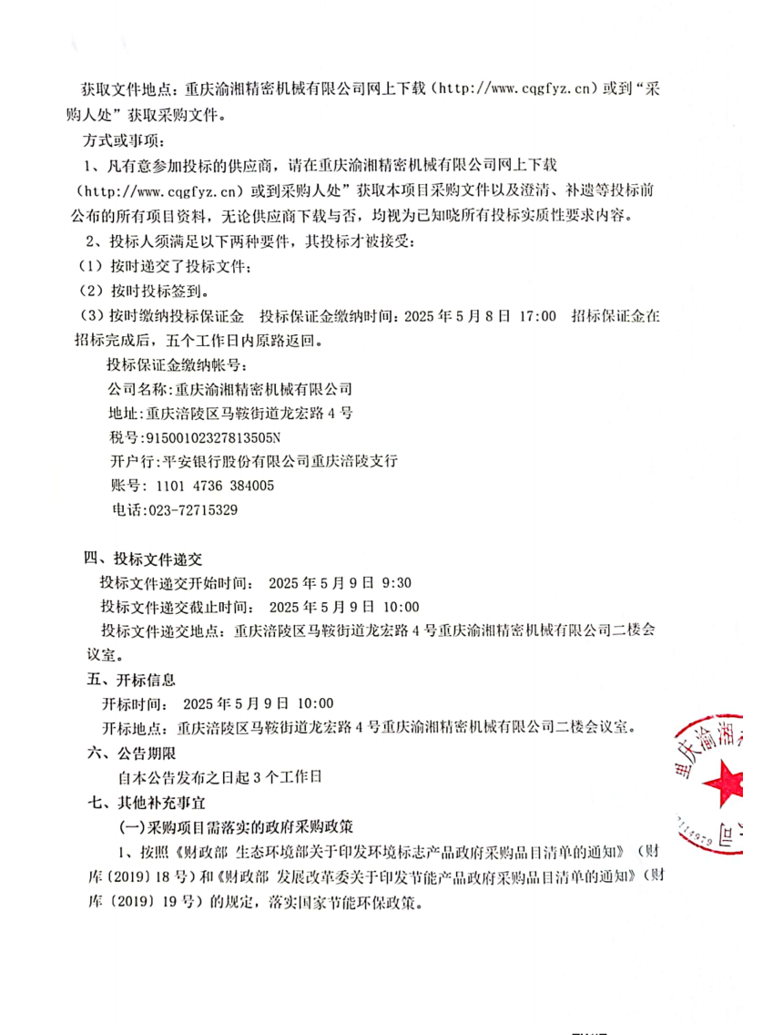 重慶渝湘精密機(jī)械有限公司項(xiàng)目 --目視化制作采購公告